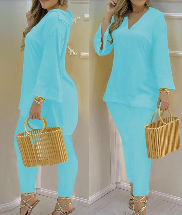 Bell Sleeve Top And Trousers Fashion Suit Women