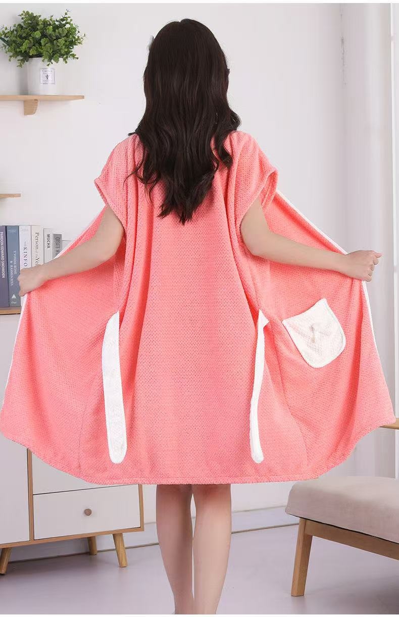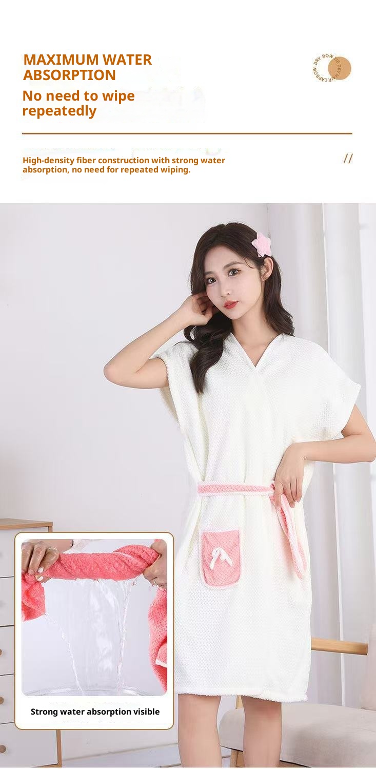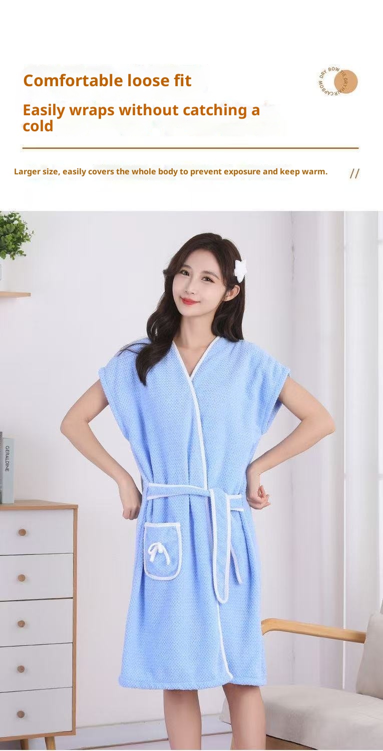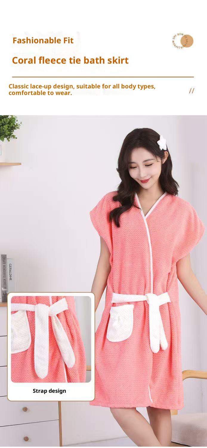 Wearable Girls' Thickened Absorbent Soft Coral Fleece Bathrobe