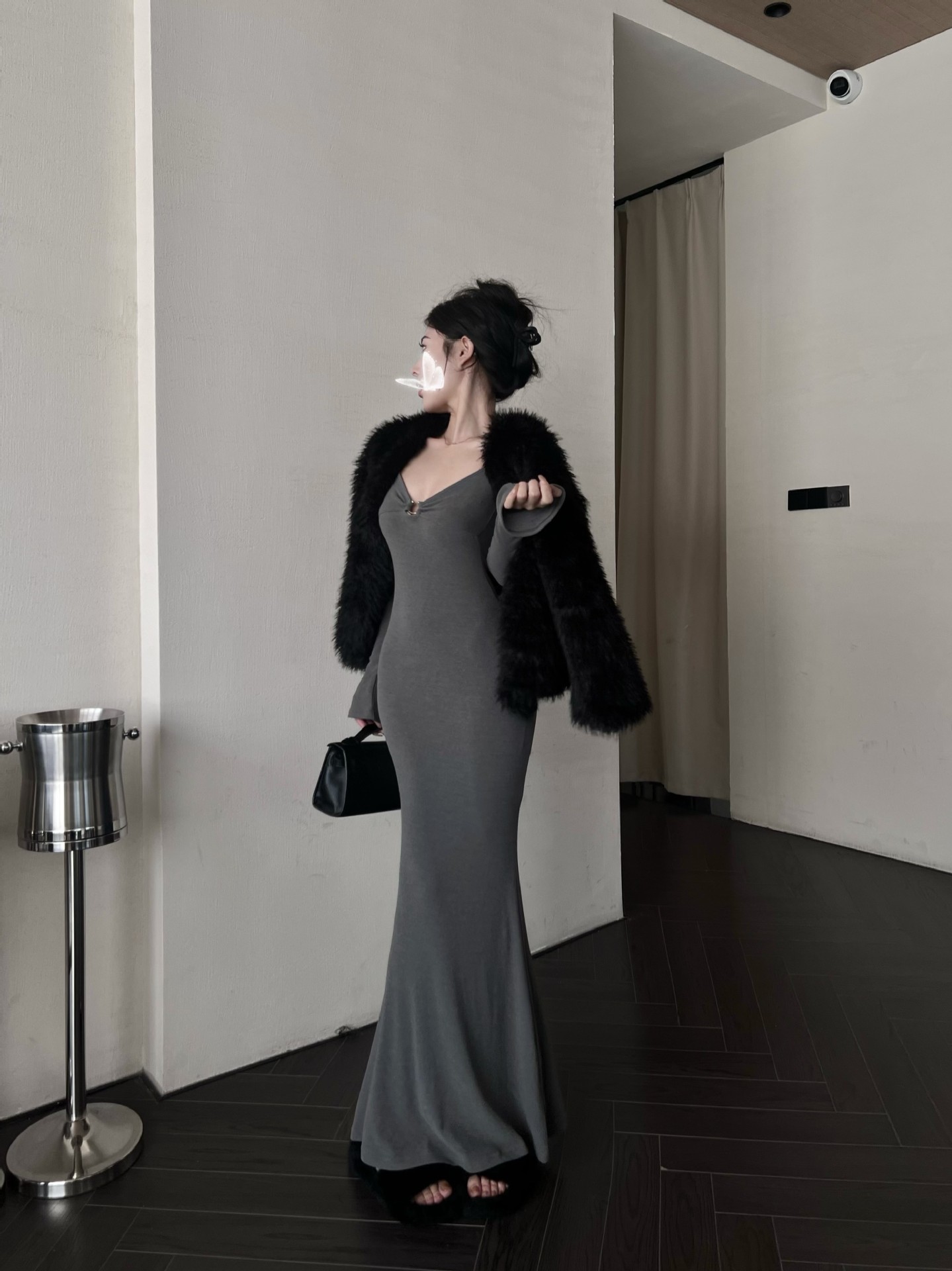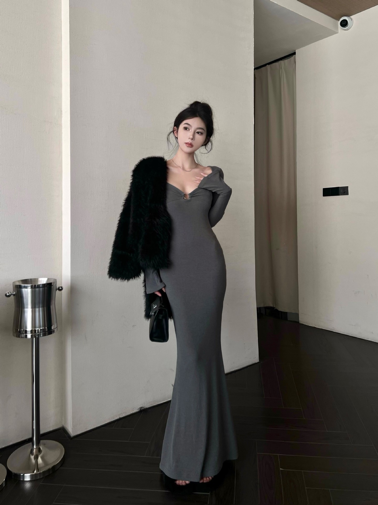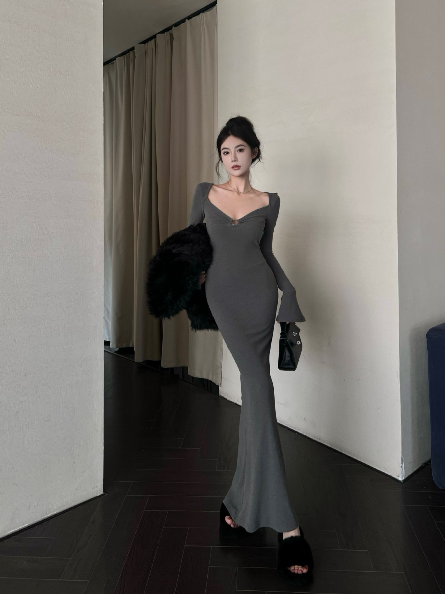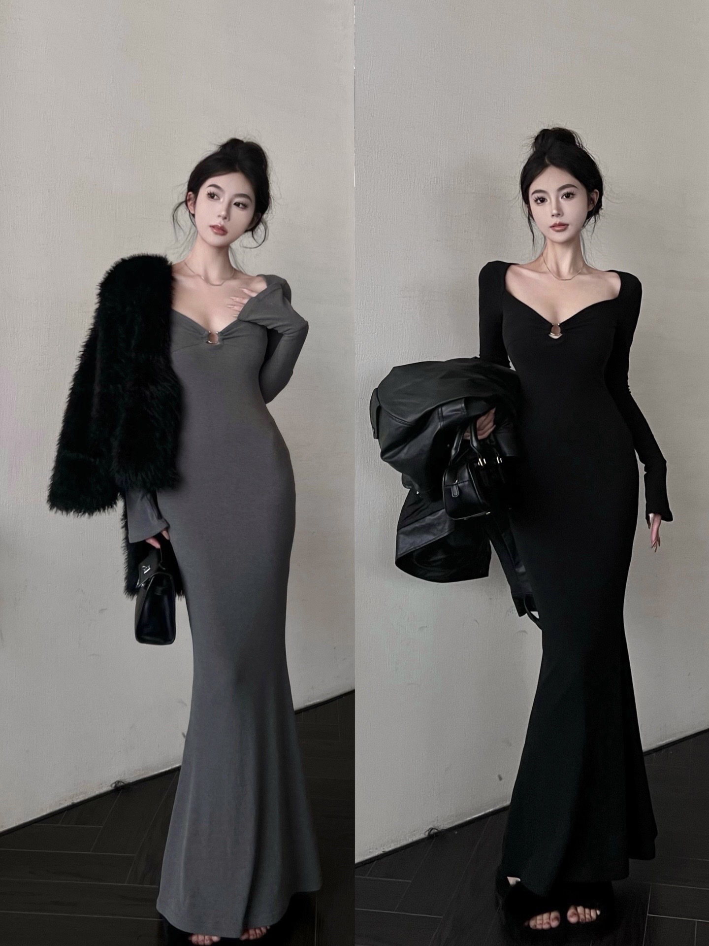 Women Fallwinter Slim Fishtail Dress Tight-fitting Cinched Hip Skirt