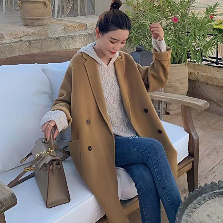 Women's Mid-length Simple Fashion Korean Style Loose Woolen Coat